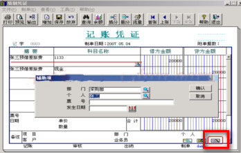 5.在填制憑證中,找到有“其它應收款”科目的憑證,選中“其它應收款”分錄,雙擊憑證右下角的 ,錄入輔助信息。