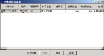 (此時的現(xiàn)象:退出個人往來期初錄入界面,則“其它應收款”期初余額為200元。但明細記錄中顯示的是100元,這樣就造成了“總賬和個人往來輔助賬對賬不平”。)