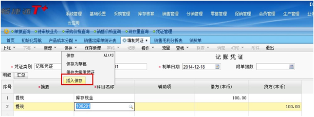 T+11.5 開始新增了插入憑證功能,賬套中 12 月的 0001 號憑證如下,想在 0001 號憑 證前再插入一張憑證應(yīng)如何操作?