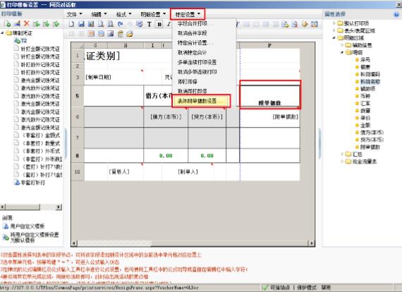 3、根據(jù)自己的需要設(shè)計了一個憑證打印模板,同樣在明細區(qū)域中打印附單據(jù)數(shù),卻會在明