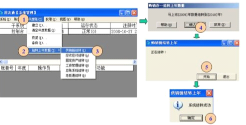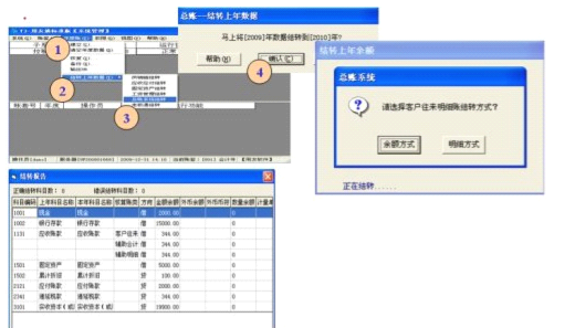 (1)、將“本年利潤”科目轉到“未分配利潤”科目 (2)、現(xiàn)金管理中上年銀行對帳平衡后要做核銷。 (3)、會計科目設置了輔助核算,結轉總賬時按“明細方式”進行結轉,需要進行客戶往來 和供應商往來兩清操作 |