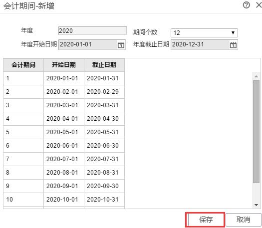 4、期間個數(shù)默認(rèn)是12個,不用修改,直接點(diǎn)下面的“保存”按鈕即可;