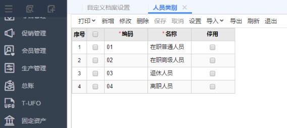 1、進入“系統(tǒng)管理”-“基礎檔案設置”-“自定義檔案”,點擊“新增”增加一個“人員類別”檔案。